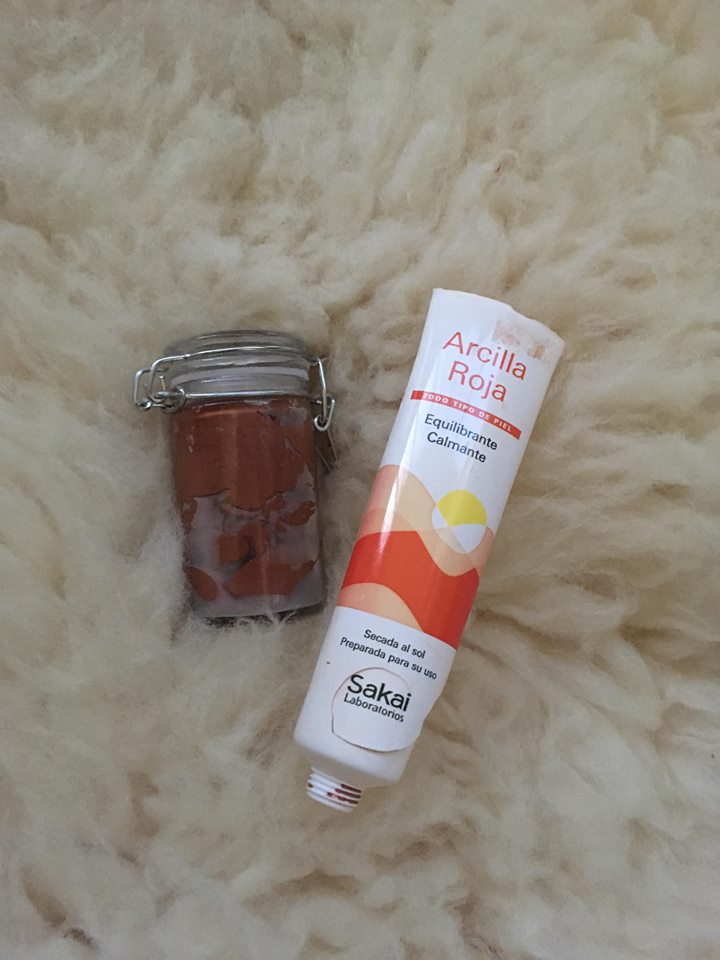 Podľa potreby a ročného obdobia si vyberám medzi krémovou, gélovou alebo ílovou maskou prípadne peelingom. Momentálne najčastejšie používam túto masku s červeným ílom zo Španielska, ktorá mi redukuje tvorbu mazu a čiernych bodiek. Som s ňou nadmieru spokojná aj preto, lebo obsahuje len tri zložky, pričom jedna z nich je voda a druhá konzervant(kedže je iba jeden neberiem to tragicky) a tretia samotný červený íl. Bohužiaľ, obal tejto masky mi popraskal tak som si ju celú dala do sklenenej vzduchotesnej nádobky, v ktorej to vyzerá mimoriadne luxusne(celkom fajn náhoda :D).